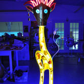 Dimensions: 30"W x 88"H x 21"D Price (before tax): $9,000.00Medium: Neon, aluminum, stained glass, gemstones, metal rods, and paint