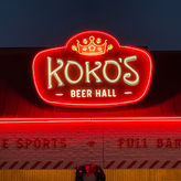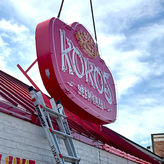 The sign features Gold, Clear Red, and 3000K White Neon. These components were selected to ensure the piece effectively illuminates and enhances the logo.